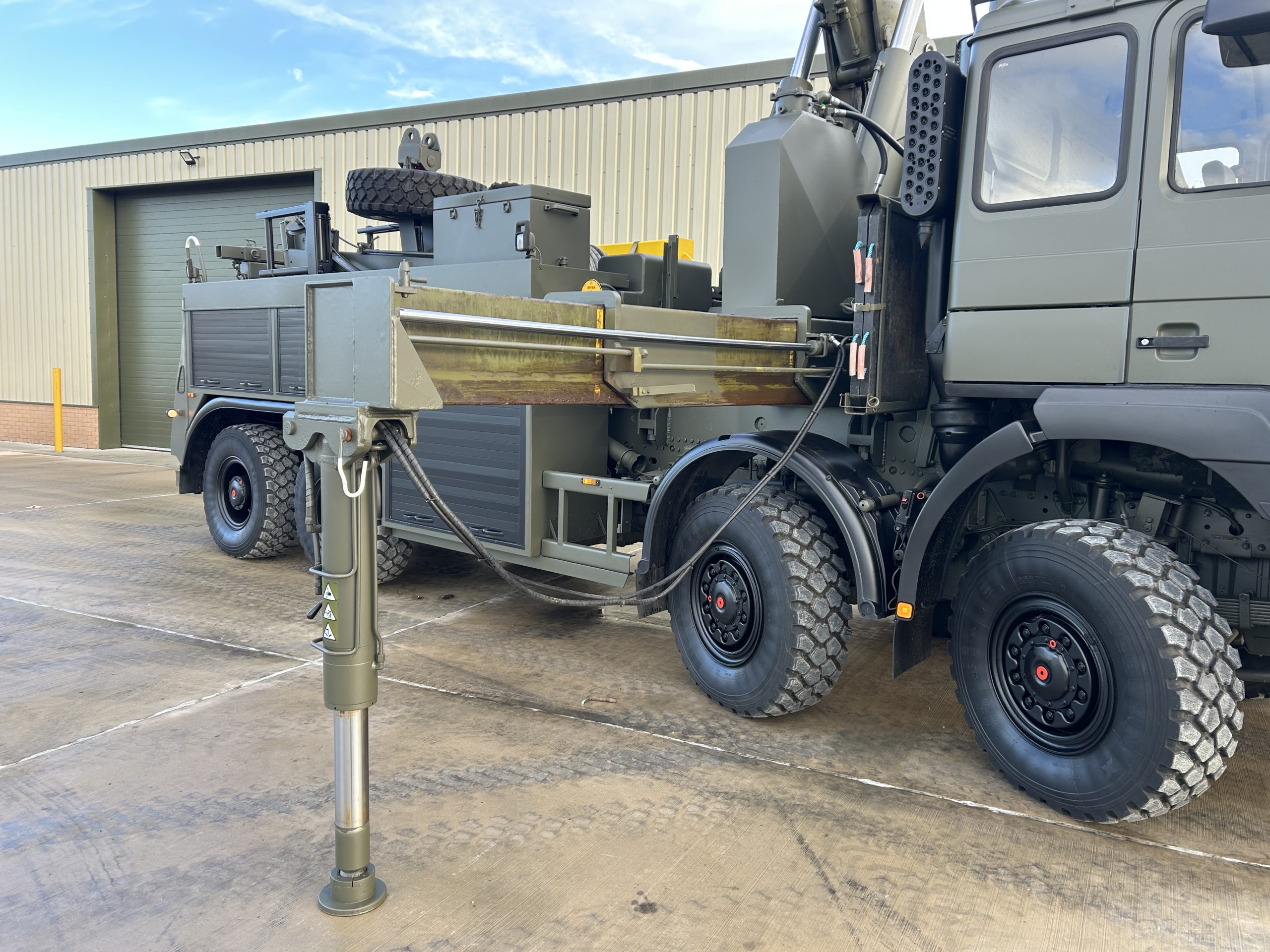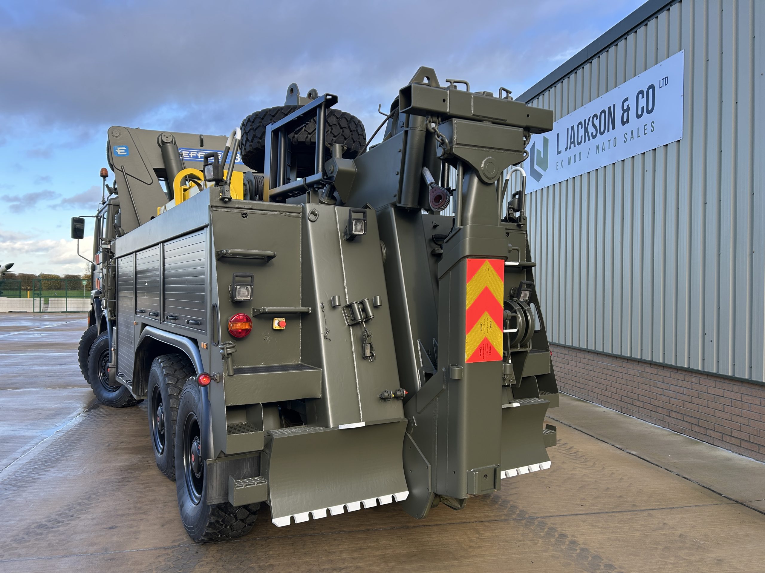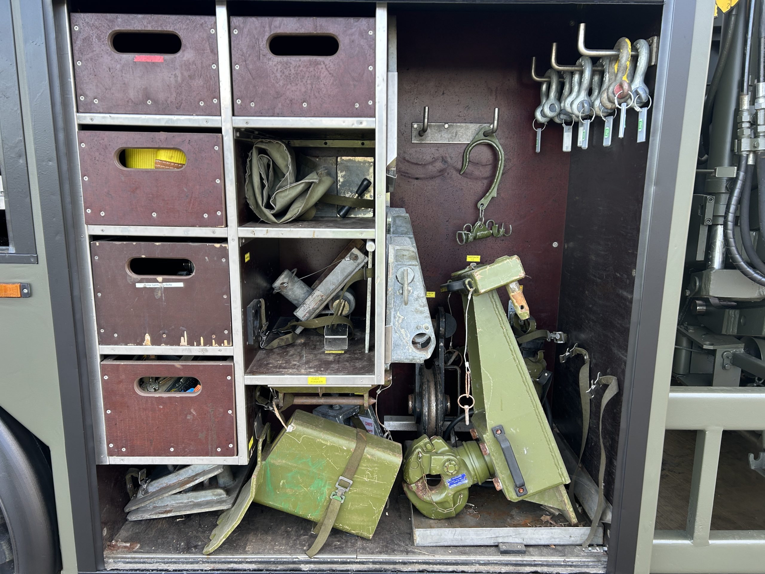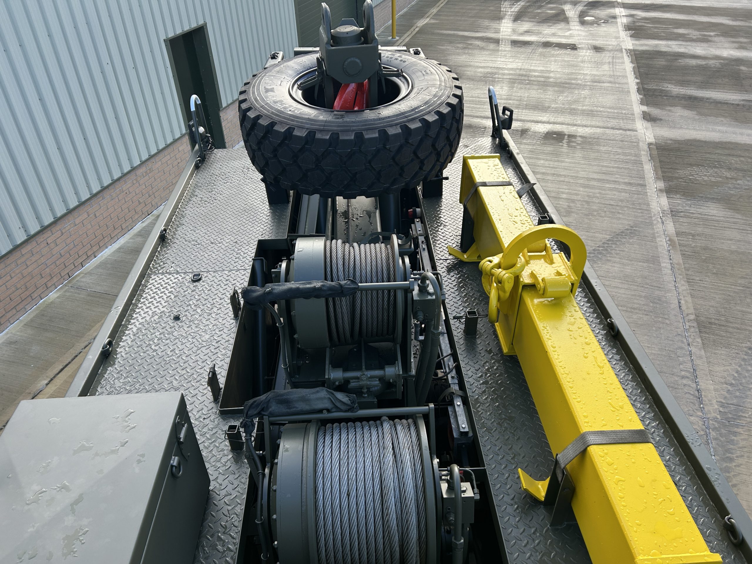The rear underlift recovery system is manufactured by H F Nielsen. Hydraulic extendable under lift system with two rear hydraulic support anchor legs 3x Sepson hydraulic winches fitted, winch one is 18 ton capacity, winch two is 10 ton and winch three 0.5 ton. These winches can be operated manually or by a retractable wander lead