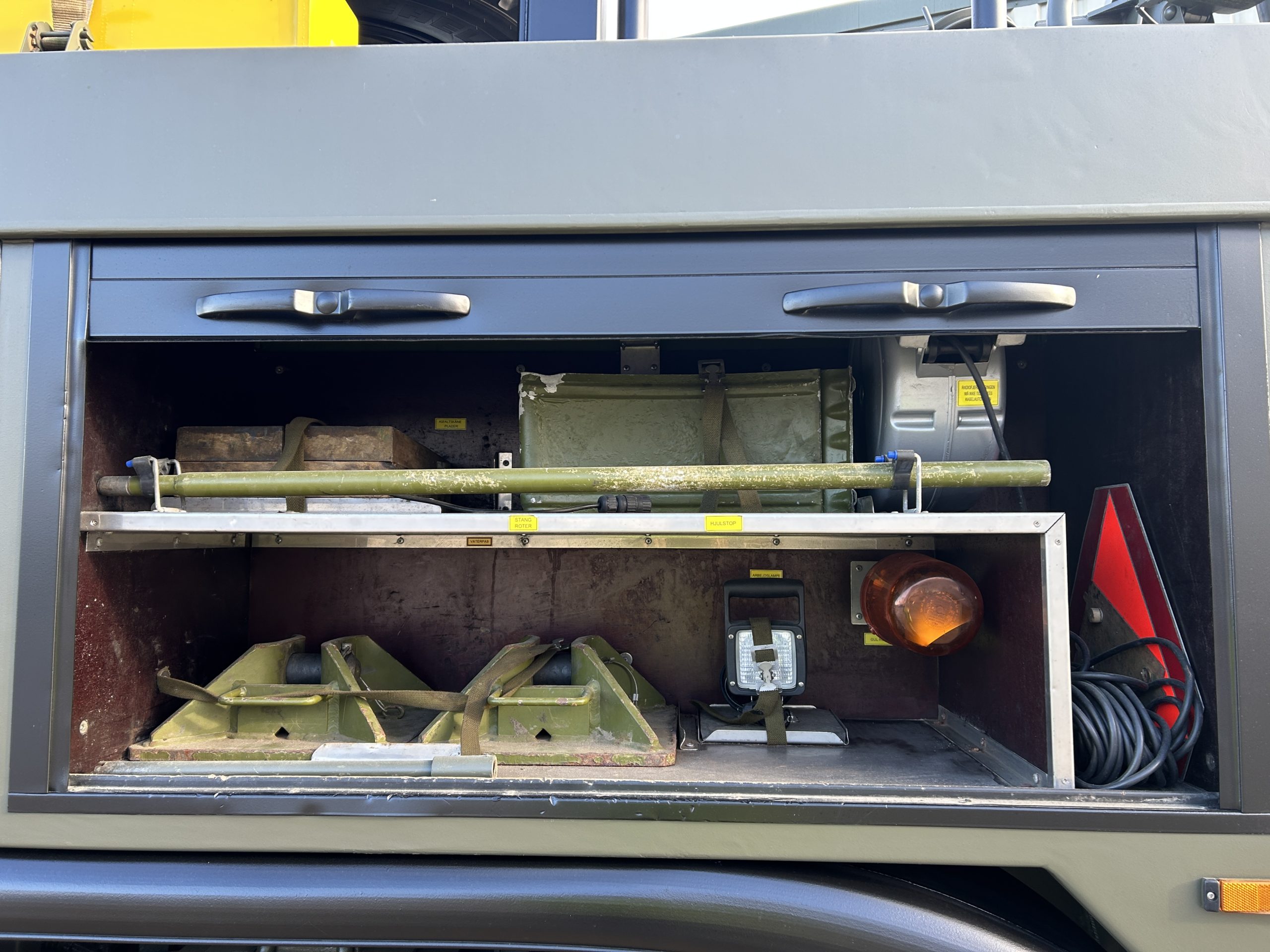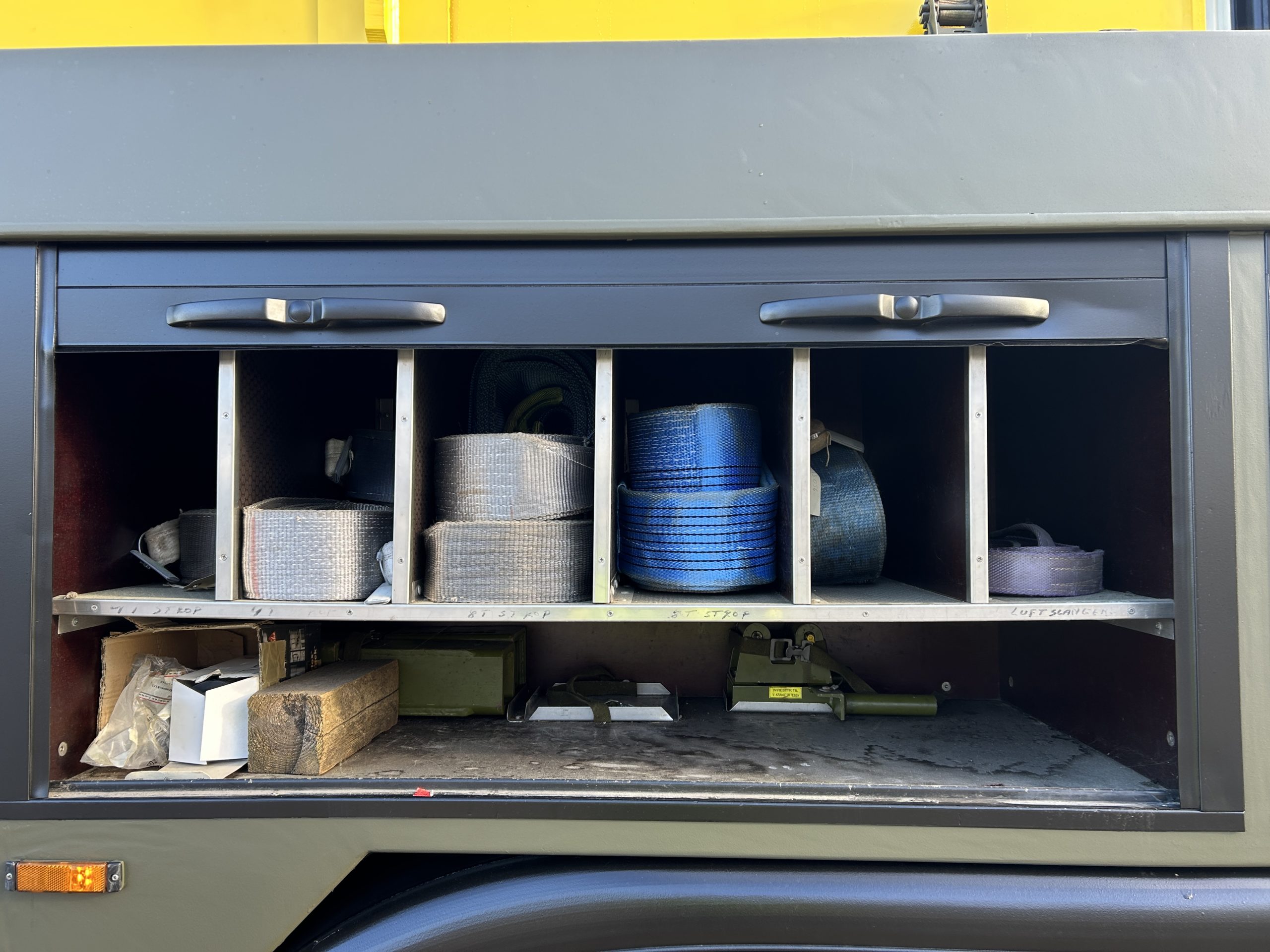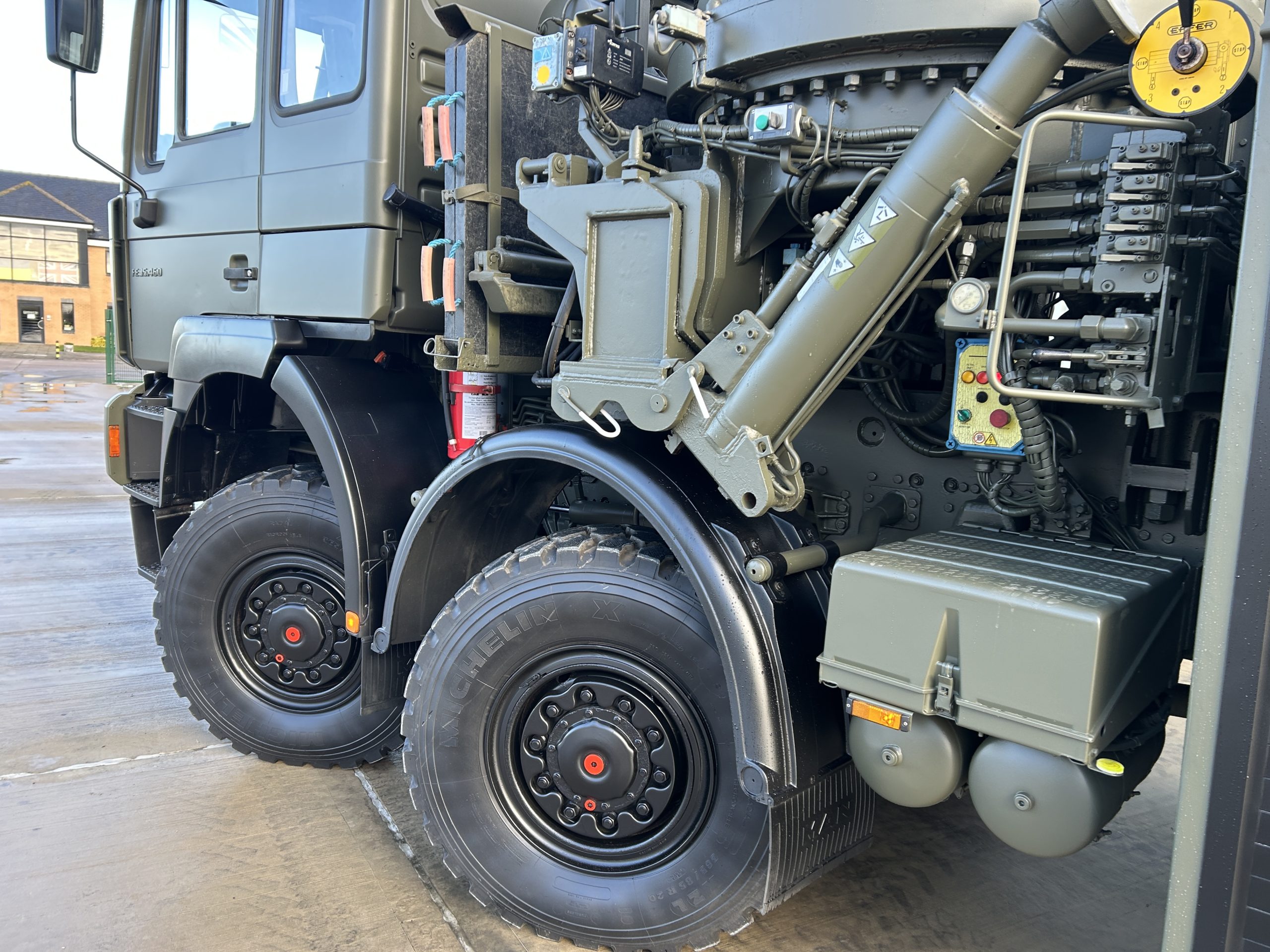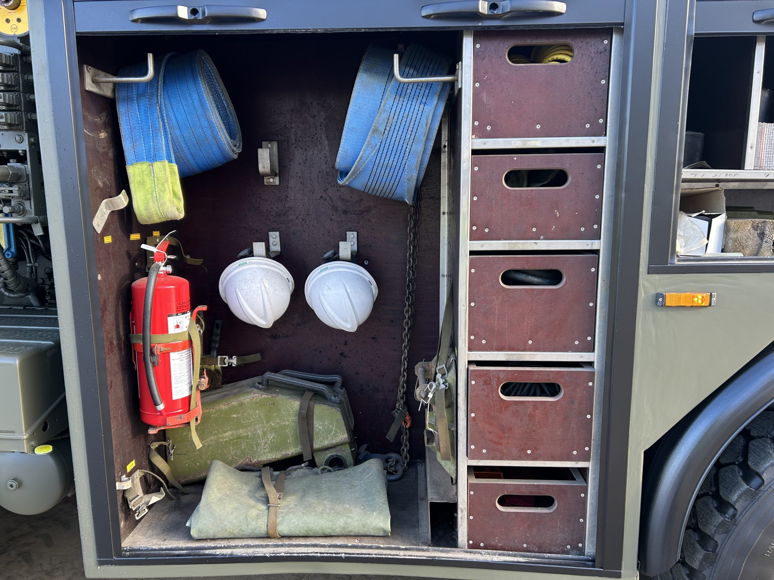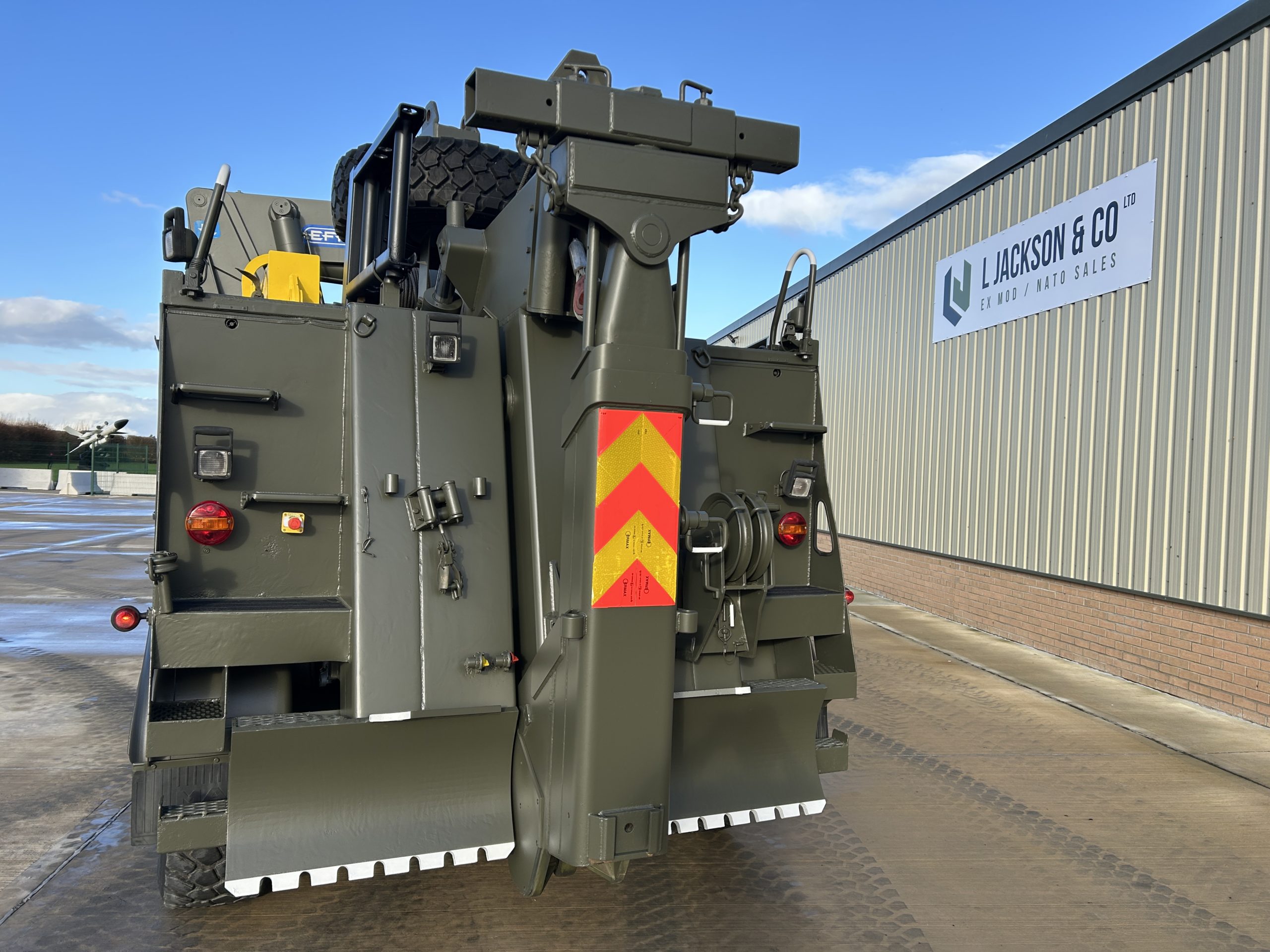 The rear underlift recovery system is manufactured by H F Nielsen. Hydraulic extendable under lift system with two rear hydraulic support anchor legs 3x Sepson hydraulic winches fitted, winch one is 18 ton capacity, winch two is 10 ton and winch three 0.5 ton. These winches can be operated manually or by a retractable wander lead