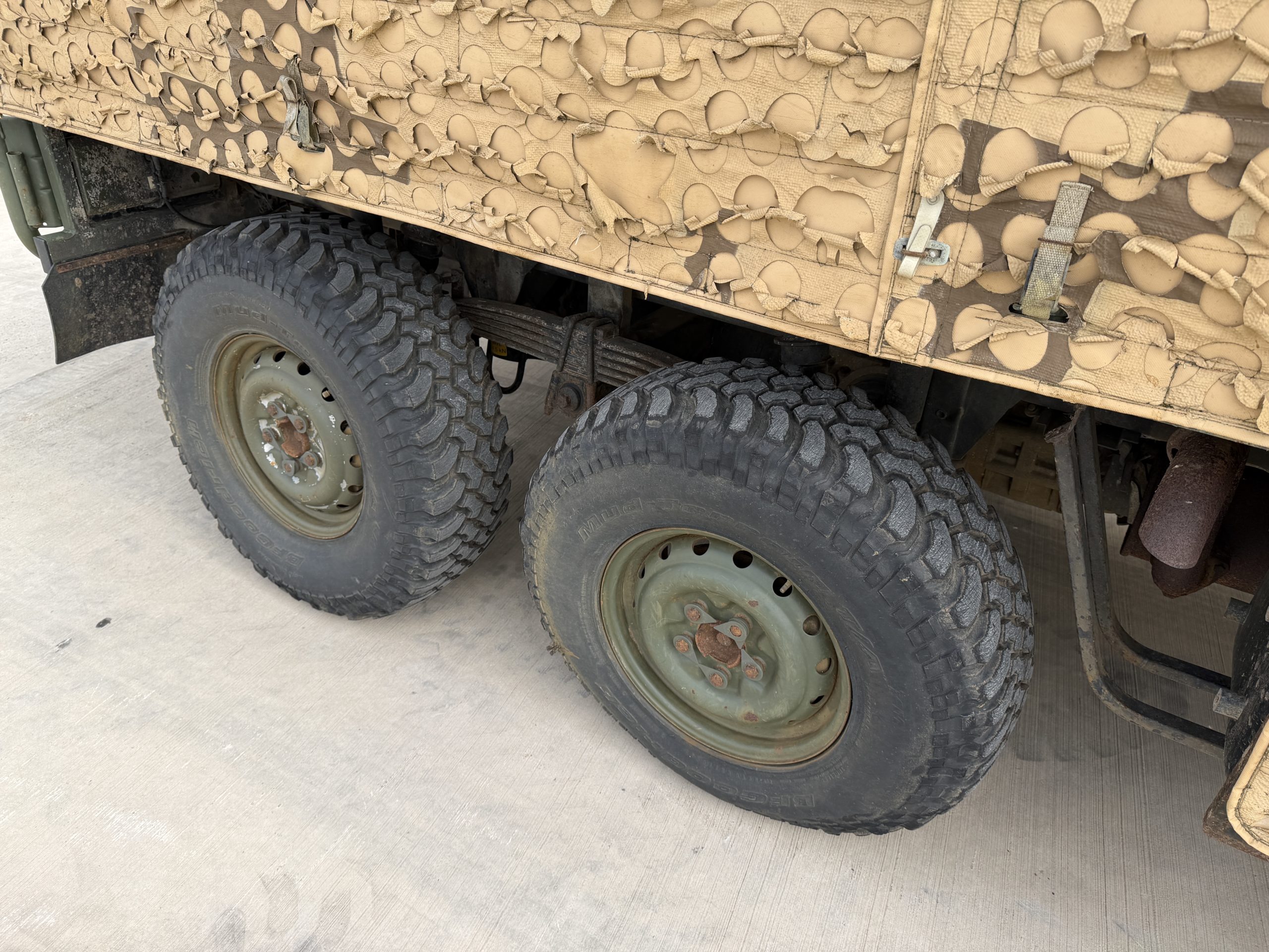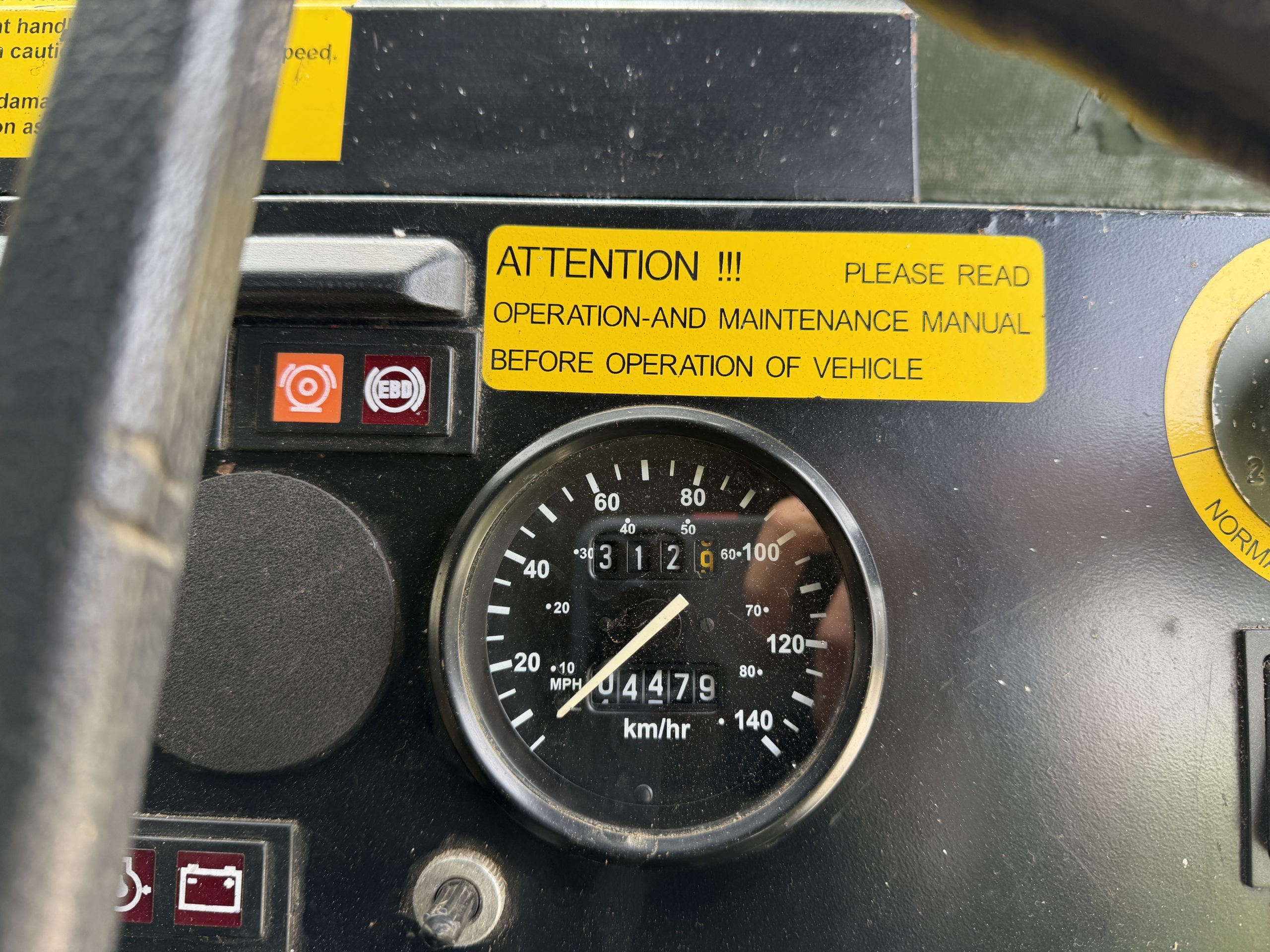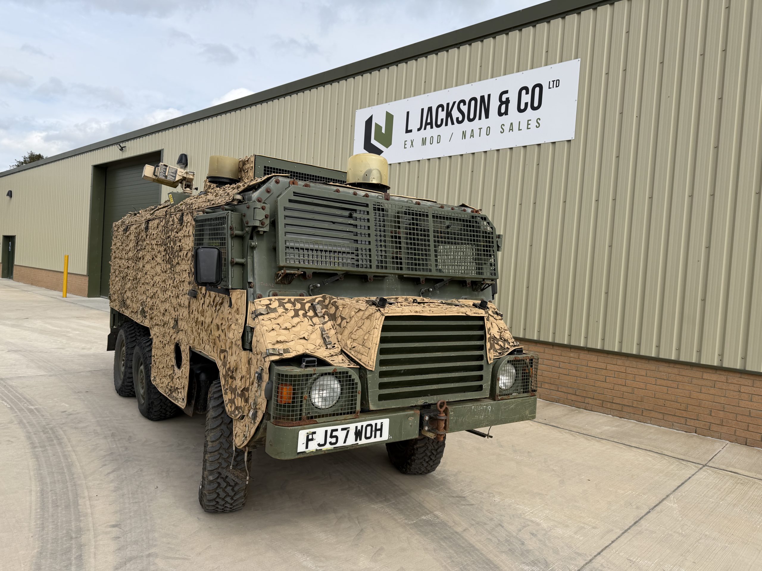 Standard equipment includes steps to front doors, grab handle for front passenger, exterior rear view mirrors, brush guard, fuel tank guard, fuel filter in tube, water separator, and NATO pintle towing device.