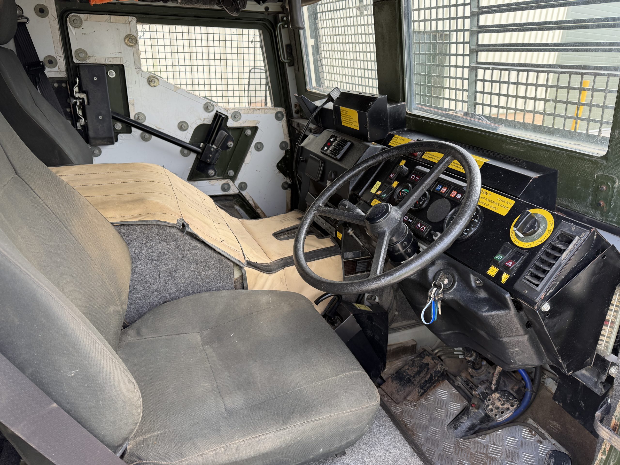All vehicles are in a right-hand drive configuration with the vehicle commander normally occupying the left seat. Transparent armour windows are provided for forward and side observation with driver and commander being provided with a forward opening door.