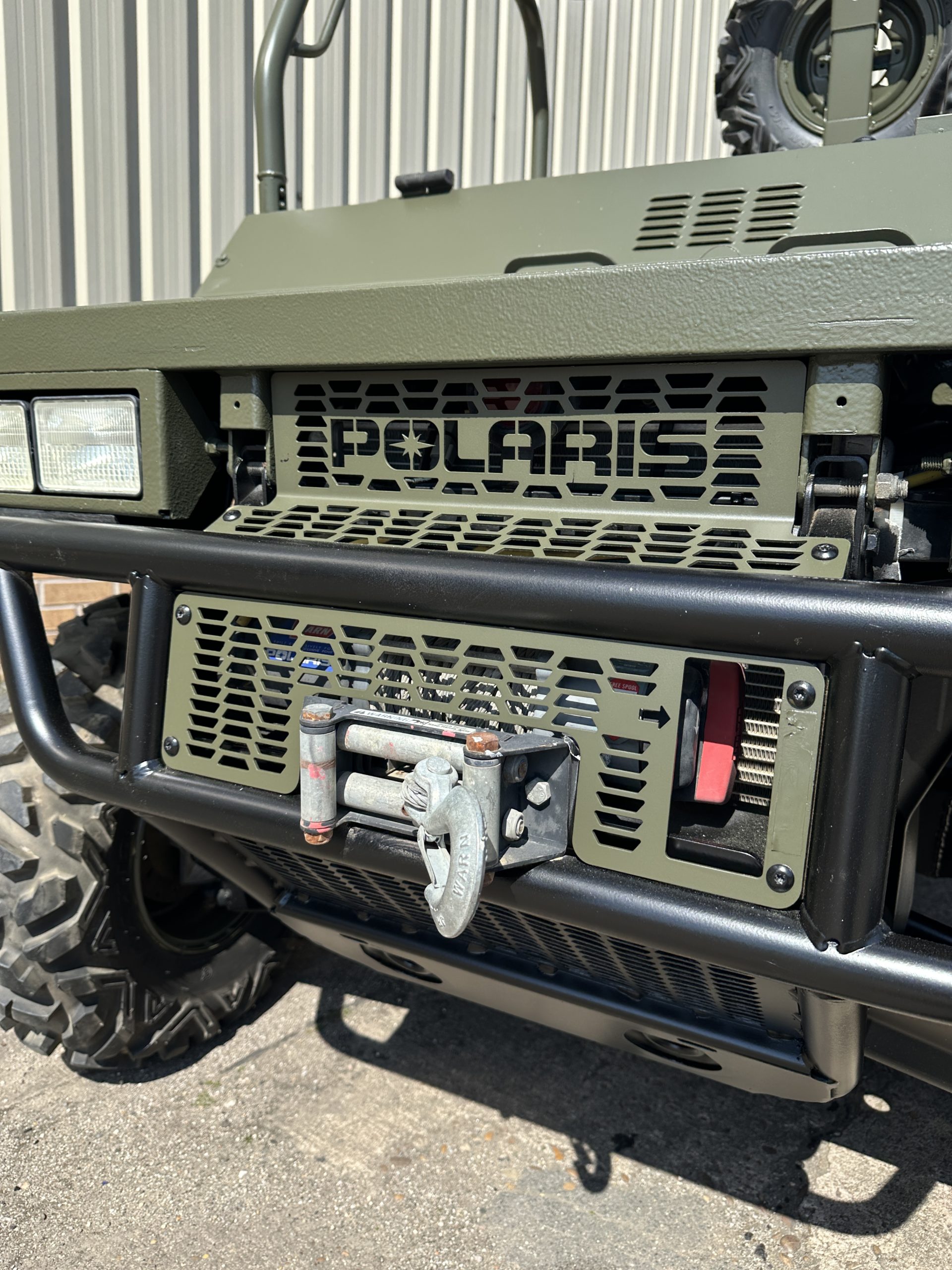 For easy transport of soldiers or equipment, the vehicle also has a front storage rack, multiple D rings, weapons storage and a rear tipping body with fold down sides. The vehicle is also made to be air droppable. Some vehicles are also fitted with a front mounted Warn electric winch